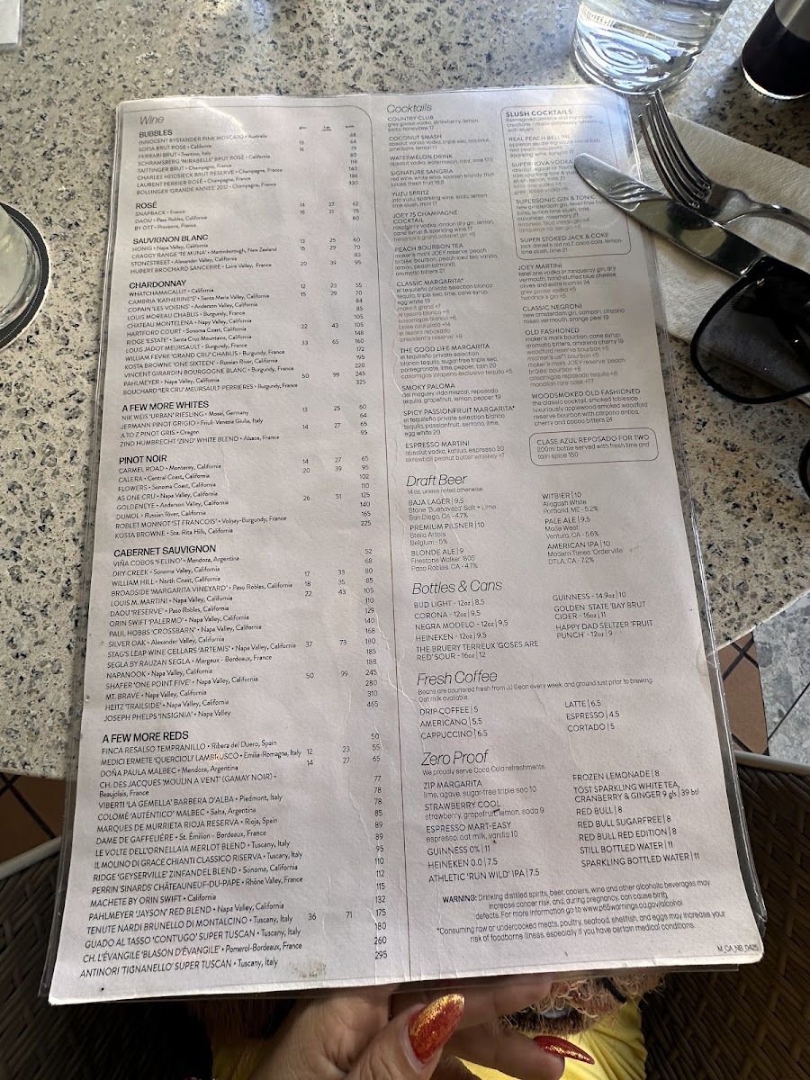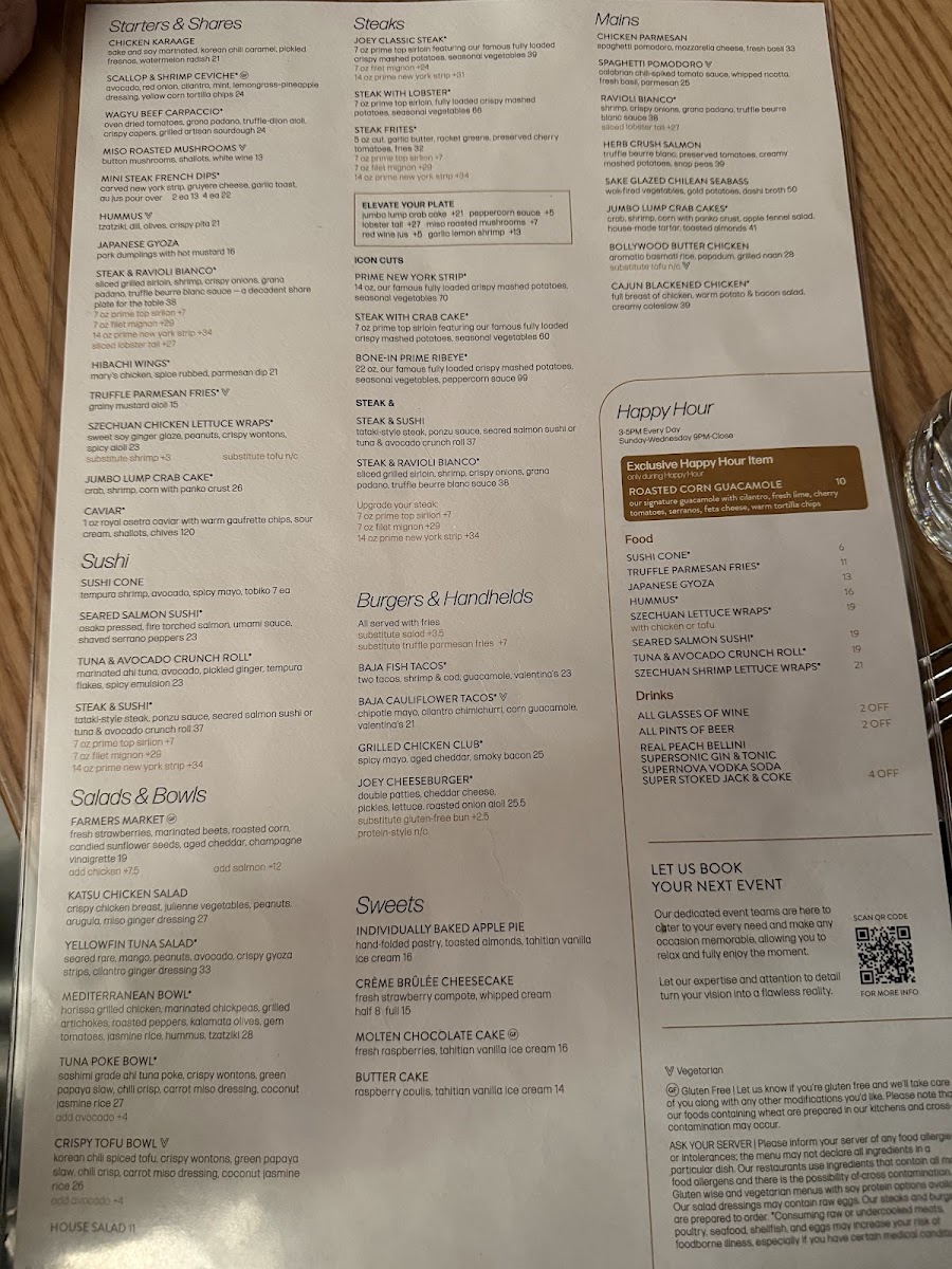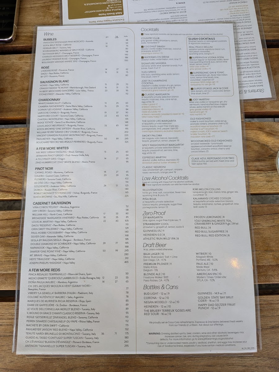 JOEY Newport Beach Menu